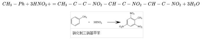 這種反應常被利用來生產(chǎn)2,4,6—三硝基甲苯(即TNT),方程式:
