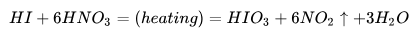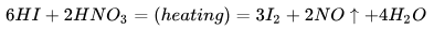 碘化氫與不同濃度的硝酸反應,把碘離子分別氧化成碘單質(zhì)和碘酸根離子: