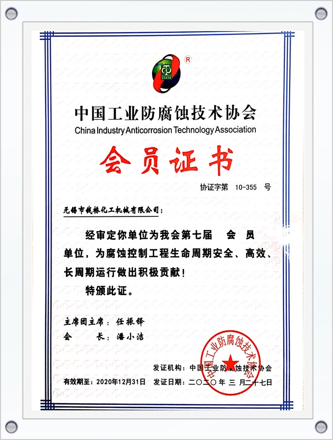 中國工業(yè)防腐蝕技術(shù)協(xié)會會員證書
