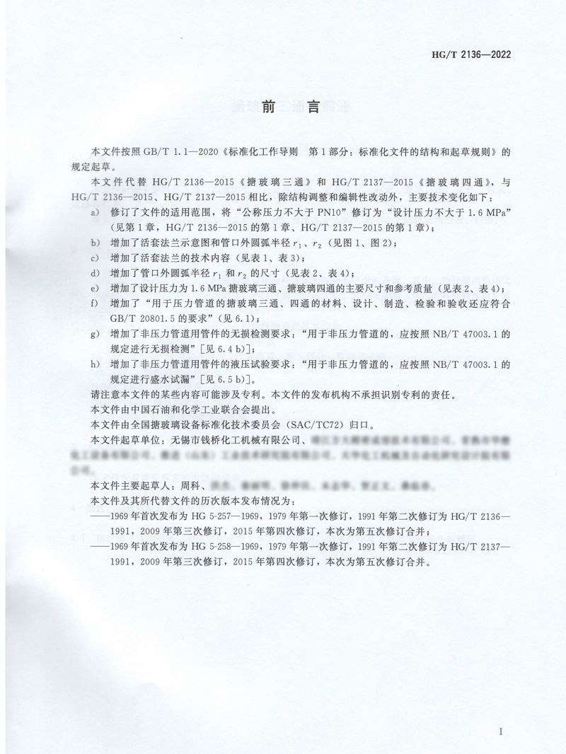 中華人民共和國(guó)化工行業(yè)標(biāo)準(zhǔn)HG/T 2136-2022搪玻璃三通四通 點(diǎn)擊下載搪玻璃三通四通行業(yè)標(biāo)準(zhǔn)