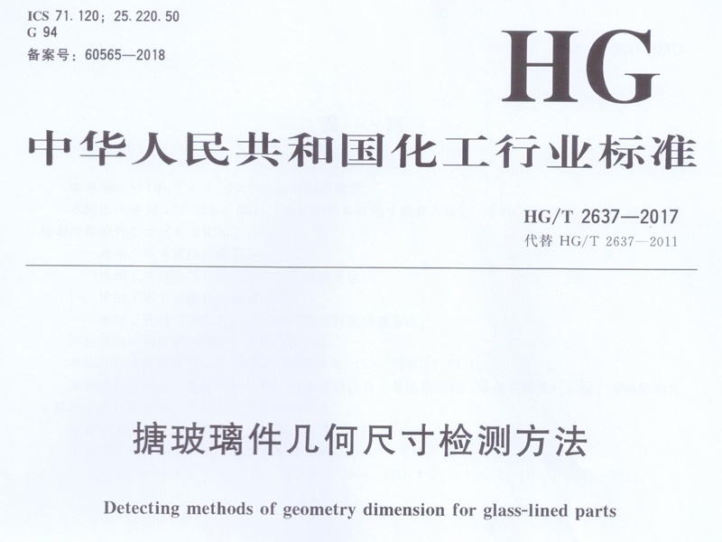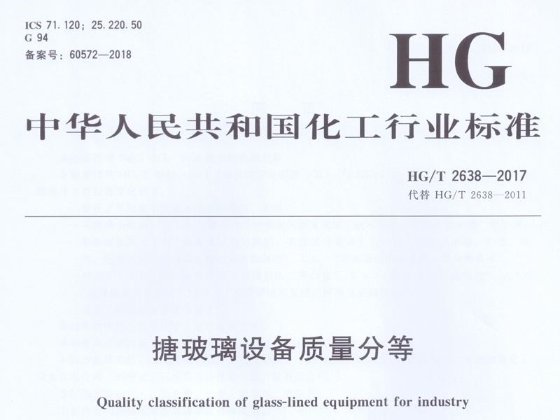 HG/T 2638-2017搪玻璃設(shè)備質(zhì)量分等主要項(xiàng)的考核