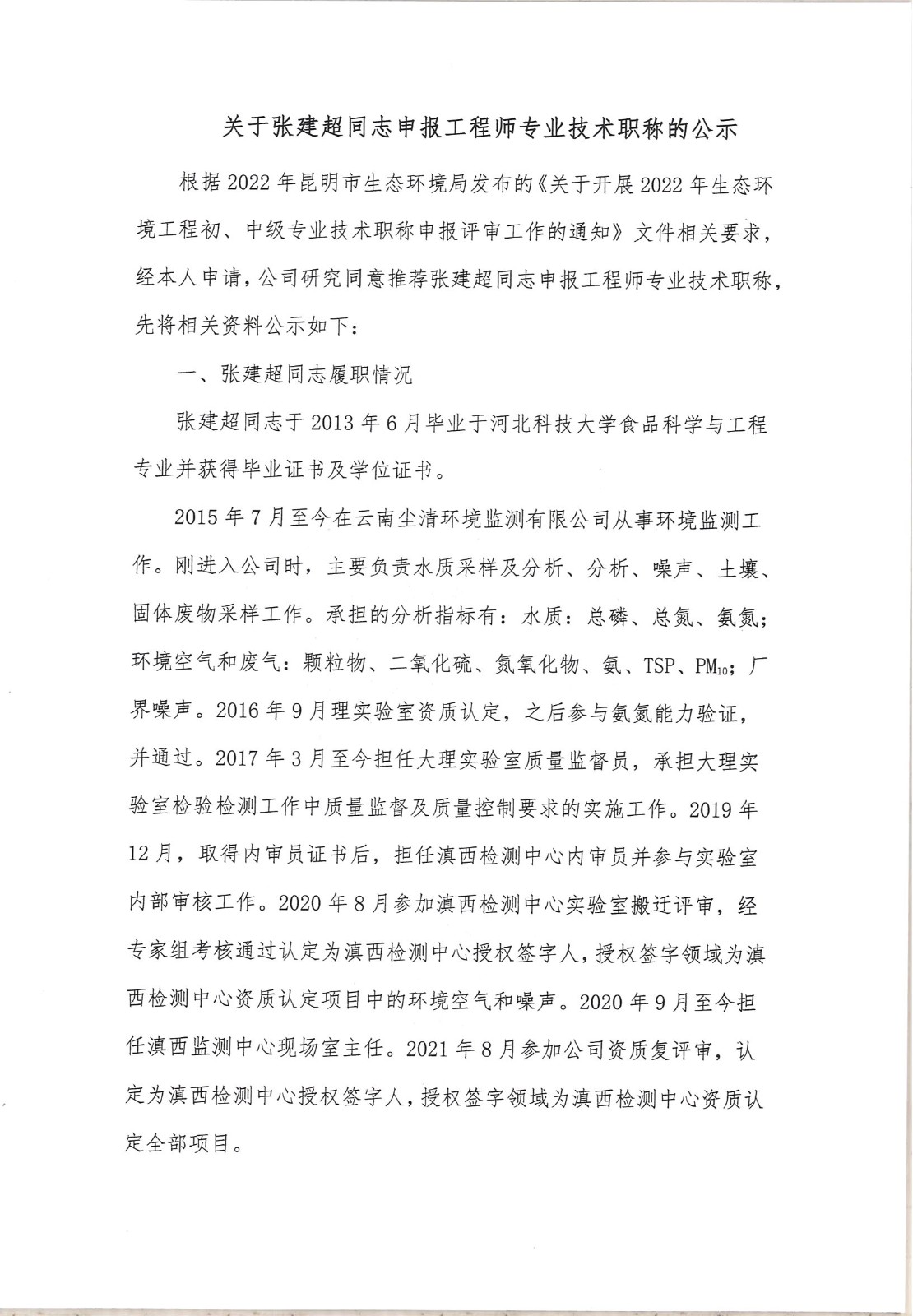 關(guān)于張建超同志申報(bào)工程師專業(yè)技術(shù)職稱的公示(公示時(shí)間:2022年7月11日至7月17日)