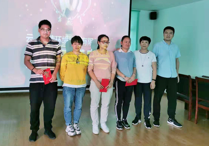 2019年8月24日,公司在塵清環(huán)境監(jiān)測有限公司現(xiàn)場舉行頒獎會,對在“第二屆全國生態(tài)環(huán)境監(jiān)測專業(yè)技術(shù)人員大比武活動”云南省大比武選拔賽中,代表塵清公司參賽并獲得個人第18名的楊慧勤及參加團(tuán)隊(duì)比賽的劉明靈、付艷芳、樊志龍等三名隊(duì)員,進(jìn)行頒獎鼓勵。